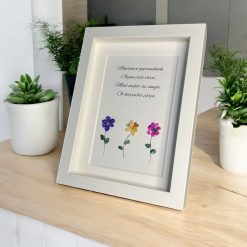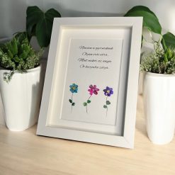 Egyedi, kézzel készült grafikás kép, amelyben a virágok színes kagylóhéjból készültek. A kedves felirat még különlegesebbé teszik ezt a szeretetteljes ajándékot. Tökéletes választás Anyák napjára – szívhez szóló, maradandó emlék.