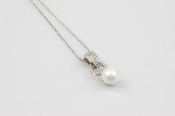 Gyöngy medálos nyaklánc cirkónia díszítéssel – Cream ellegance