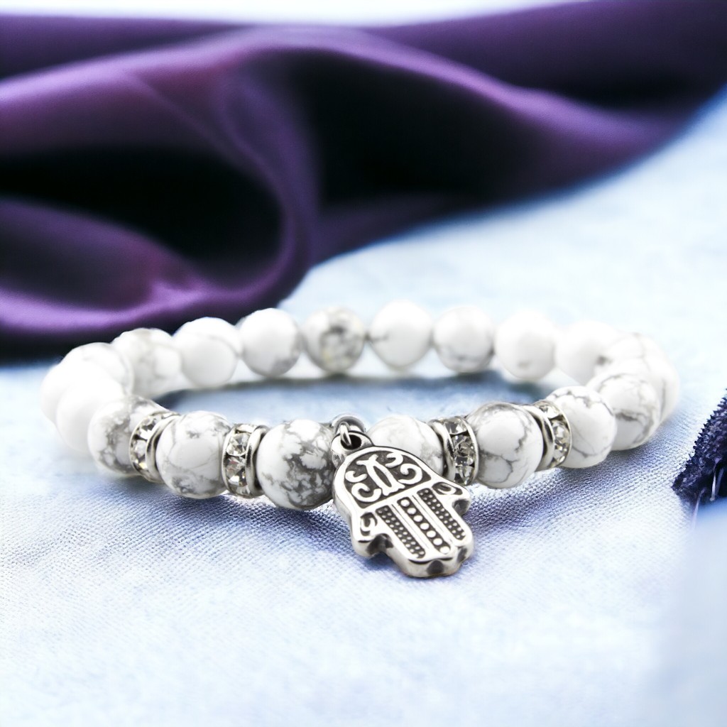 Howlit ásványkarkötő nemesfém Hamsa kéz medállal