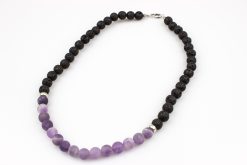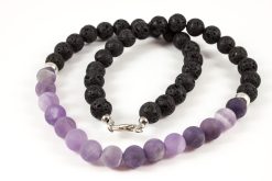 A nyaklánc anyaga: lávakő, matt ametiszt