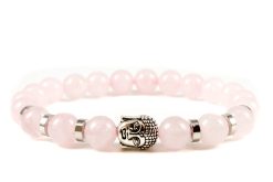 Rózsakvarc ásványkarkötő Buddha medállal